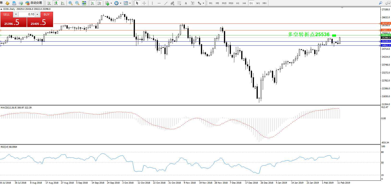 道指盘中一度涨近500点,收涨372.65点,涨幅1.49%,报25425.76点。得益于市场风险偏好情绪改善,美国政府避免再次关门,令市场情绪乐观。美国国会民主党与共和党议员宣布,两党在周一晚间达成了避免政府再次陷入破坏性关门的协议。竭力避免政府重蹈关门覆辙的共和党谈判代表签署了一项边境安全协议,其中的边境墙拨款远远少于美国总统特朗普的要求与白宫先前预期。
