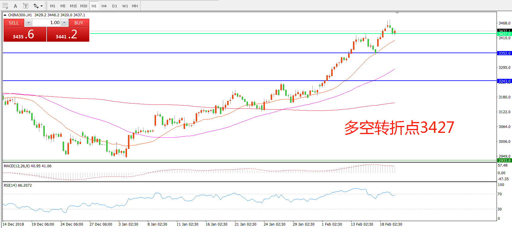 小时图看,CHINA300中华指数冲高后小幅回落。但整体依然位于支撑之上。均线系统呈多头排列, MACD红柱走平,整体维持偏多思路。