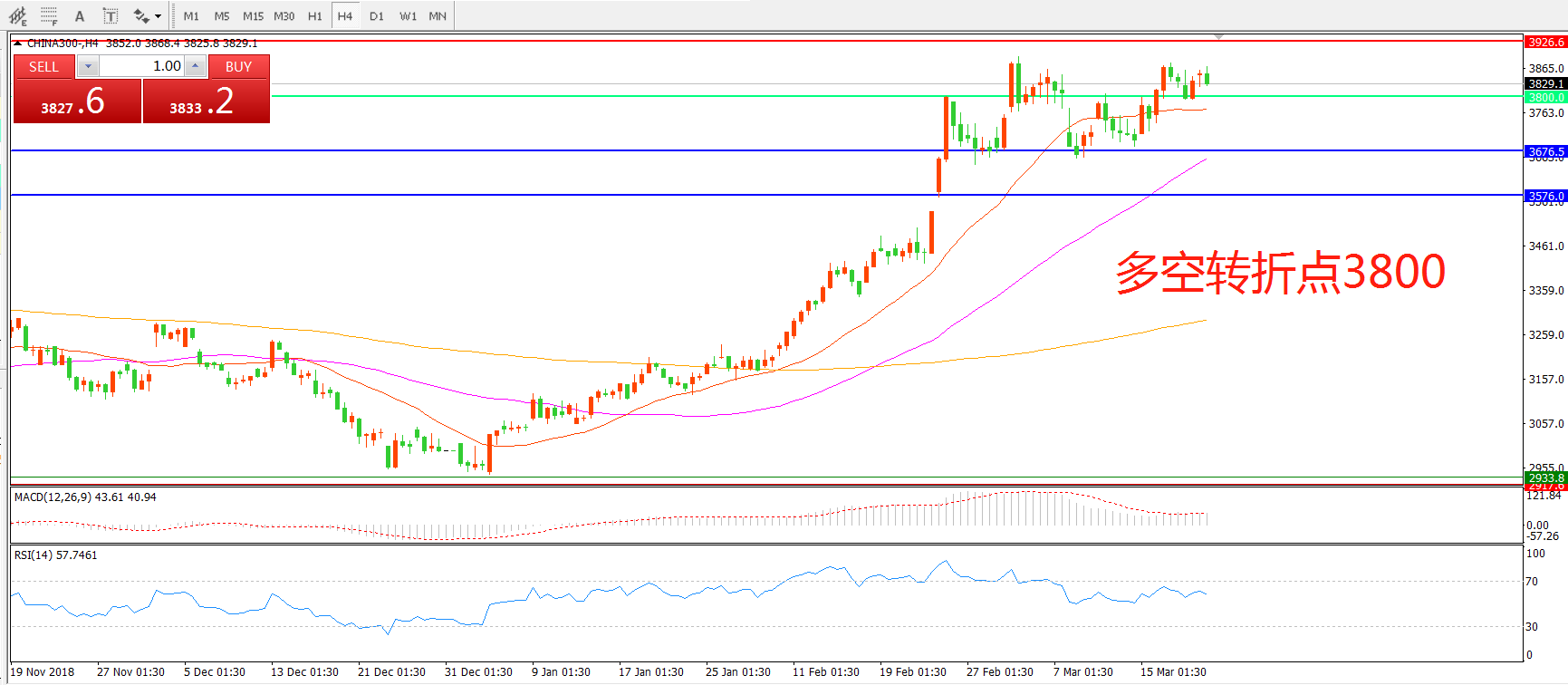 4小时图看,中华指数CHINA300中华指数连续上行,虽然今日小幅回落,但整体形态偏多,均线系统呈多头排列, MACD红柱增加,RSI指标拐头,日内延续上行概率较大。