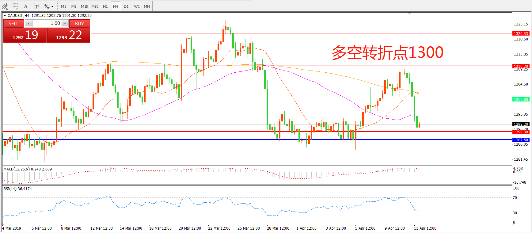 周四(4月11日),美国劳工部公布的数据显示,上周美国初请失业救济人数意外跌至19.6万人,创1969年10月以来最低水平,低于预期的21万人,意味着美国劳动力市场发展仍然强劲。鉴于近期非农的强劲表现,初请数据可能算不上是一个大惊喜,但美元受到日内强劲数据的提振强势反弹,现货黄金周四(4月11日)大跌,美市盘中最低下探至1294.54美元/盎司,几乎失去连续三日的涨幅,重返1300关口下方。