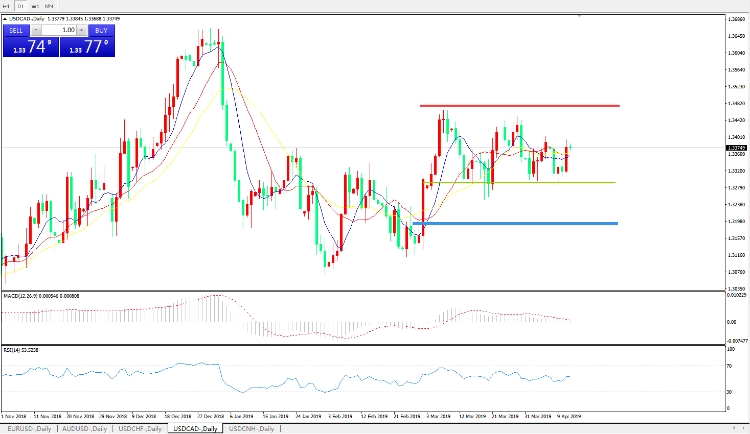 美元兑加元USDCAD 日线图: