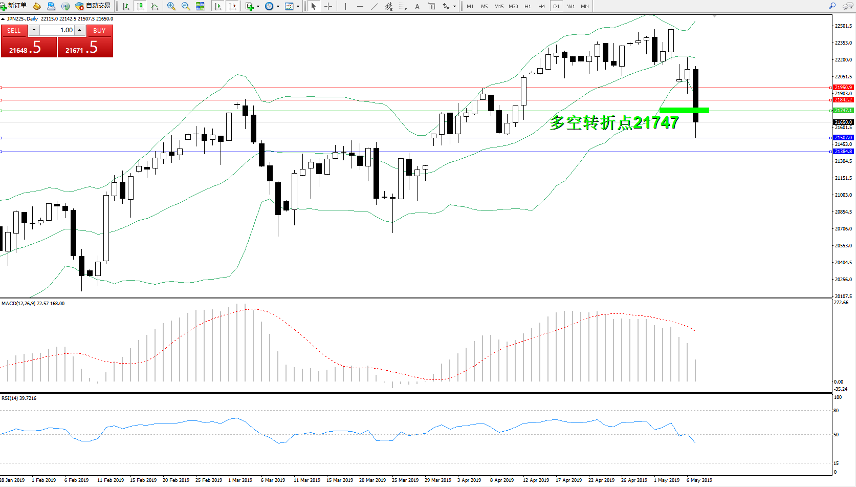 日本股市在星期二走低,其中造船业、运输设备和海运等下跌的板块带领股指走低。日经225指数在休市10天后的首个交易日跌1.51%,收于21,923.72,尽管数据显示,日本制造业三个月来首次扩张。中美全面经济对话中方牵头人刘鹤将于59日至10日访美,与美方就经贸问题进行第十一轮磋商。日本4月日经/Markit制造业PMI3月的49.5升至50.2,超过预期的49.5,自今年1月以来,首次重返枯荣线上方。