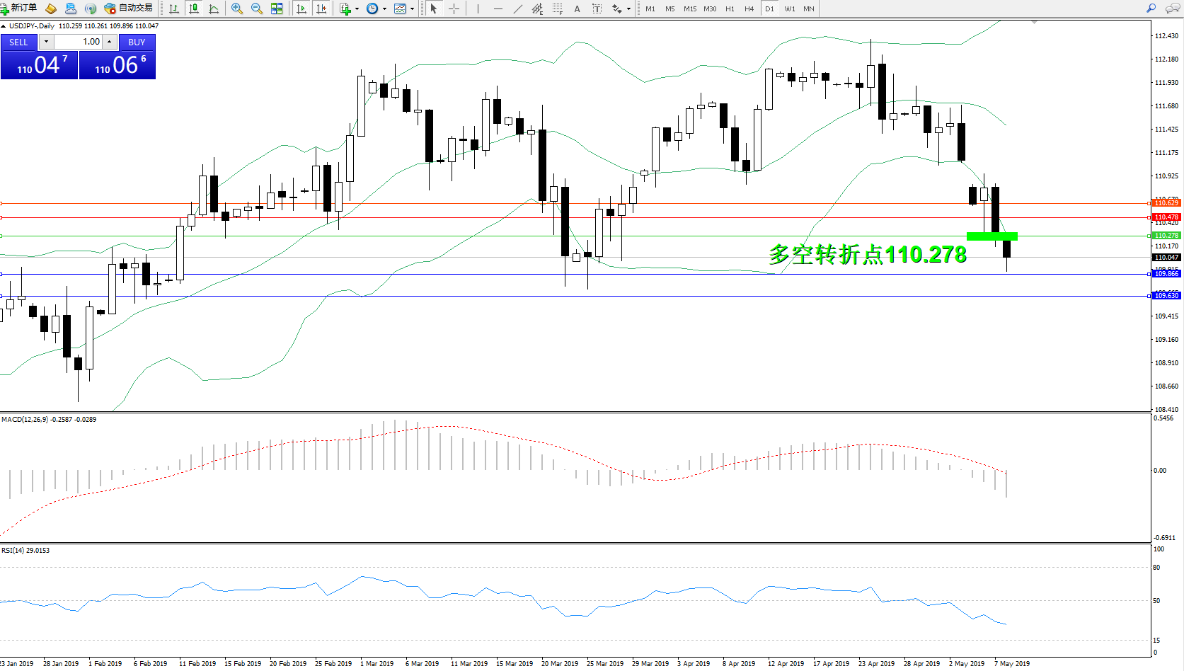 交易策略:110.278下方看跌,目标109.866109.630