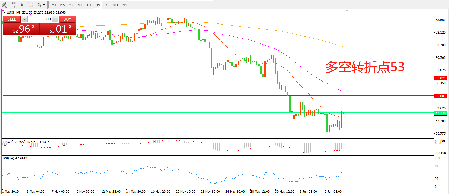 交易策略:在53.00之下看跌,目标50.00       46.00