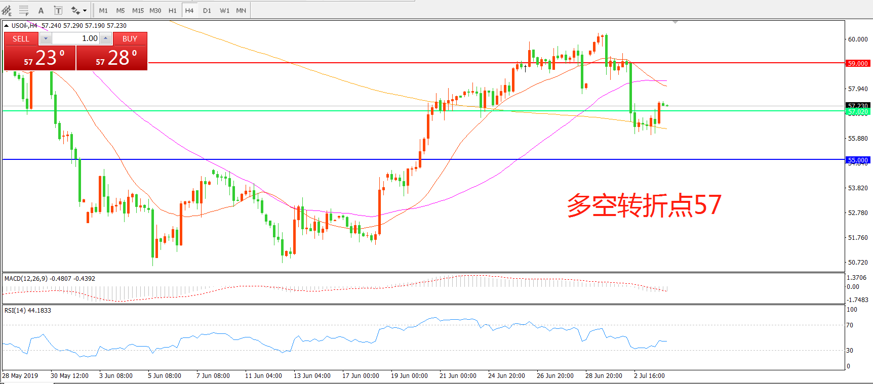 备选策略:在57.00 之上看涨,目标59.00 61.00