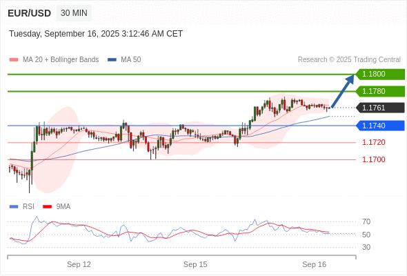 交易策略: 在 1.1740 之上,看涨,目标价位为 1.1780 ,然后为 1.1800 。