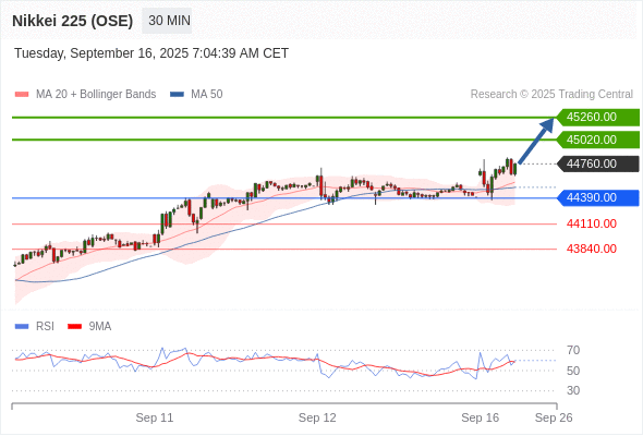 在 44390.00 之上,看涨,目标价位为 45020.00 ,然后为 45260.00 。