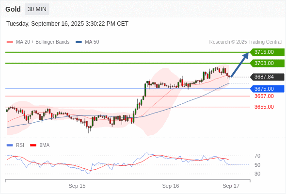 在 3675.00 之上,看涨,目标价位为 3703.00 ,然后为 3715.00 。