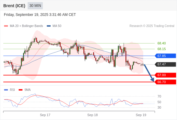 交易策略: 在 67.85 之下,看跌,目标价位为 67.00 ,然后为 66.70 。