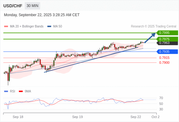 在 0.7935 之上,看涨,目标价位为 0.7975 ,然后为 0.7995 。