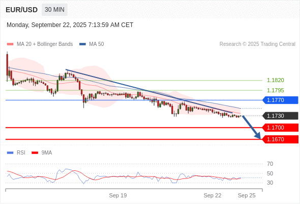 交易策略: 在 1.1770 之下,看跌,目标价位为 1.1700 ,然后为 1.1670 。