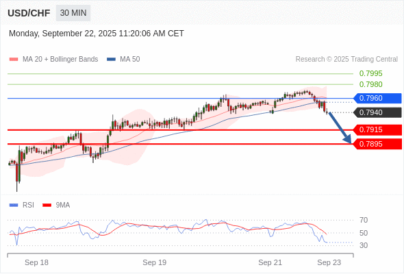 在 0.7960 之下,看跌,目标价位为 0.7915 ,然后为 0.7895 。