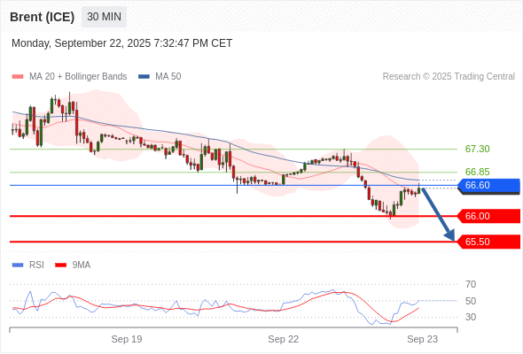 交易策略: 在 66.60 之下,看跌,目标价位为 66.00 ,然后为 65.50 。