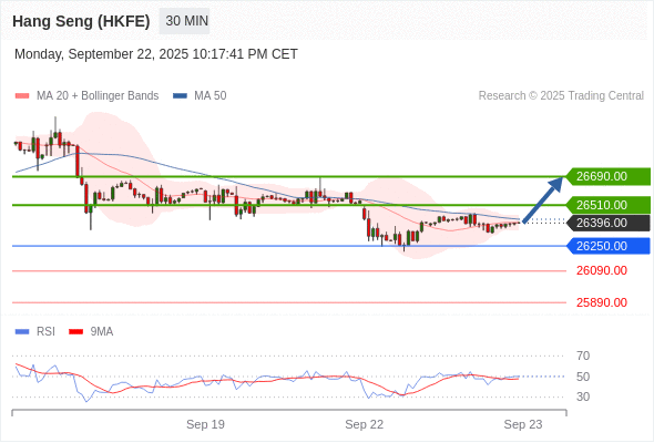 交易策略: 在 26250.00 之上,看涨,目标价位为 26510.00 ,然后为 26690.00 。