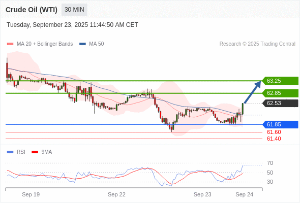 在 61.85 之上,看涨,目标价位为 62.85 ,然后为 63.25 。
