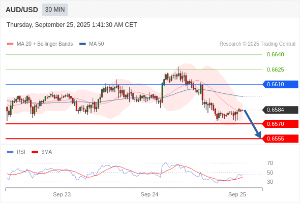 在 0.6610 之下,看跌,目标价位为 0.6570 ,然后为 0.6555 。