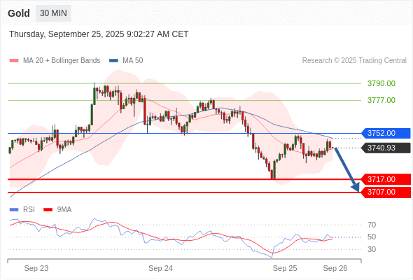 黄金现货 当日内: 短期关键阻力位在3752.00。