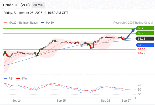 在 64.50 之上,看涨,目标价位为 65.70 ,然后为 66.20 。
