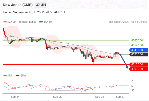 交易策略: 在 46430.00 之下,看跌,目标价位为 46100.00 ,然后为 46000.00 。