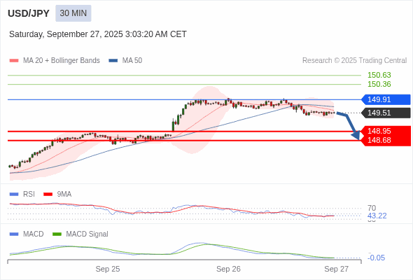 美元/日元 当日内 : 看跌,在 149.91 之下。