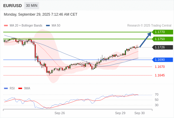 在 1.1690 之上,看涨,目标价位为 1.1750 ,然后为 1.1770 。