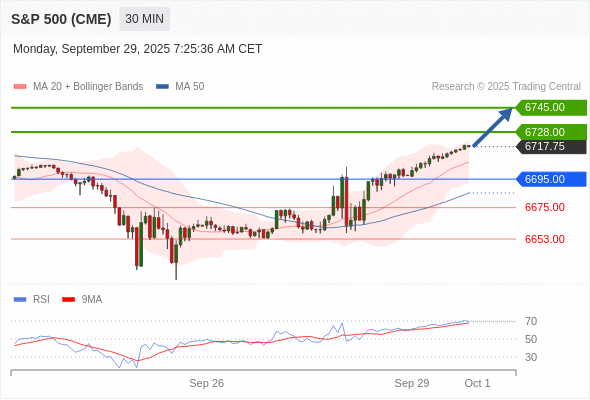 在 6695.00 之上,看涨,目标价位为 6728.00 ,然后为 6745.00 。