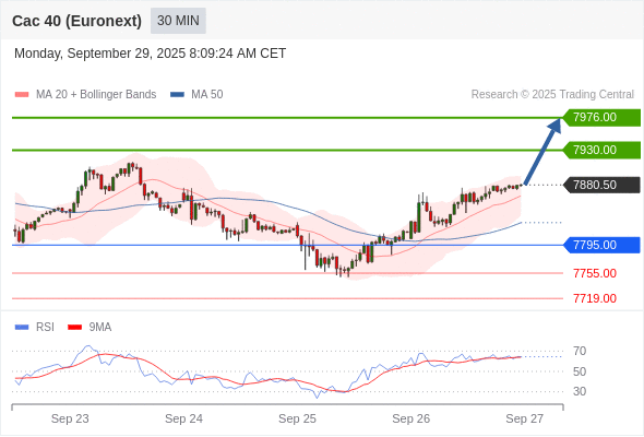法国CAC指数期货 (Euronext) (V5) 当日内: 看涨。