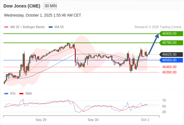 在 46550.00 之上,看涨,目标价位为 46780.00 ,然后为 46900.00 。