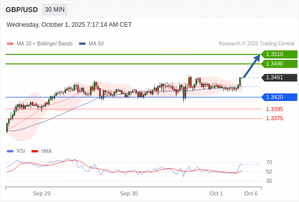 在 1.3420 之上,看涨,目标价位为 1.3490 ,然后为 1.3510 。