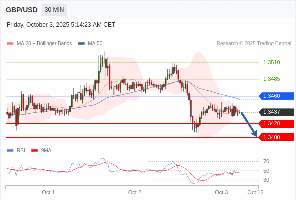 在 1.3460 之下,看跌,目标价位为 1.3420 ,然后为 1.3400 。
