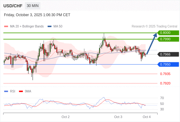 在 0.7950 之上,看涨,目标价位为 0.7990 ,然后为 0.8000 。