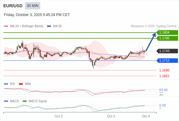 欧元/美元 当日内 : 看涨,当 1.1712 为支撑位。