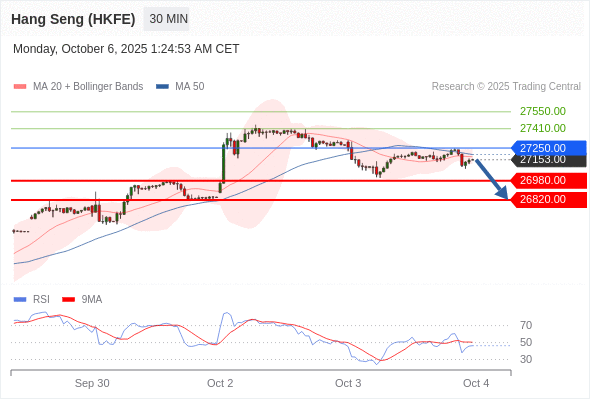 交易策略: 在 27250.00 之下,看跌,目标价位为 26980.00 ,然后为 26820.00 。