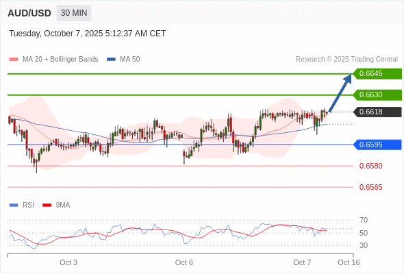 在 0.6595 之上,看涨,目标价位为 0.6630 ,然后为 0.6645 。