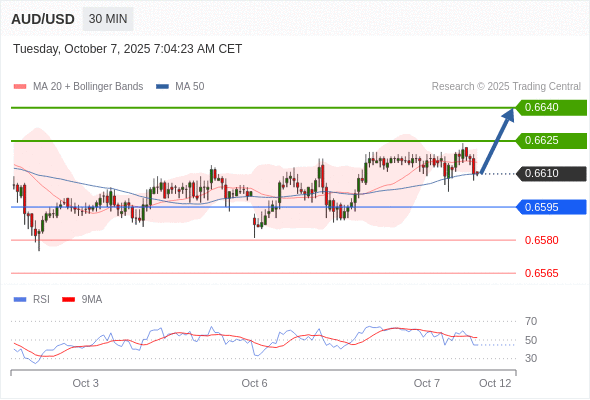 在 0.6595 之上,看涨,目标价位为 0.6625 ,然后为 0.6640 。