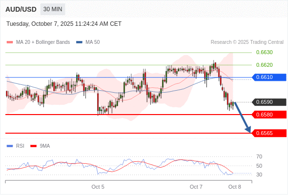 在 0.6610 之下,看跌,目标价位为 0.6580 ,然后为 0.6565 。