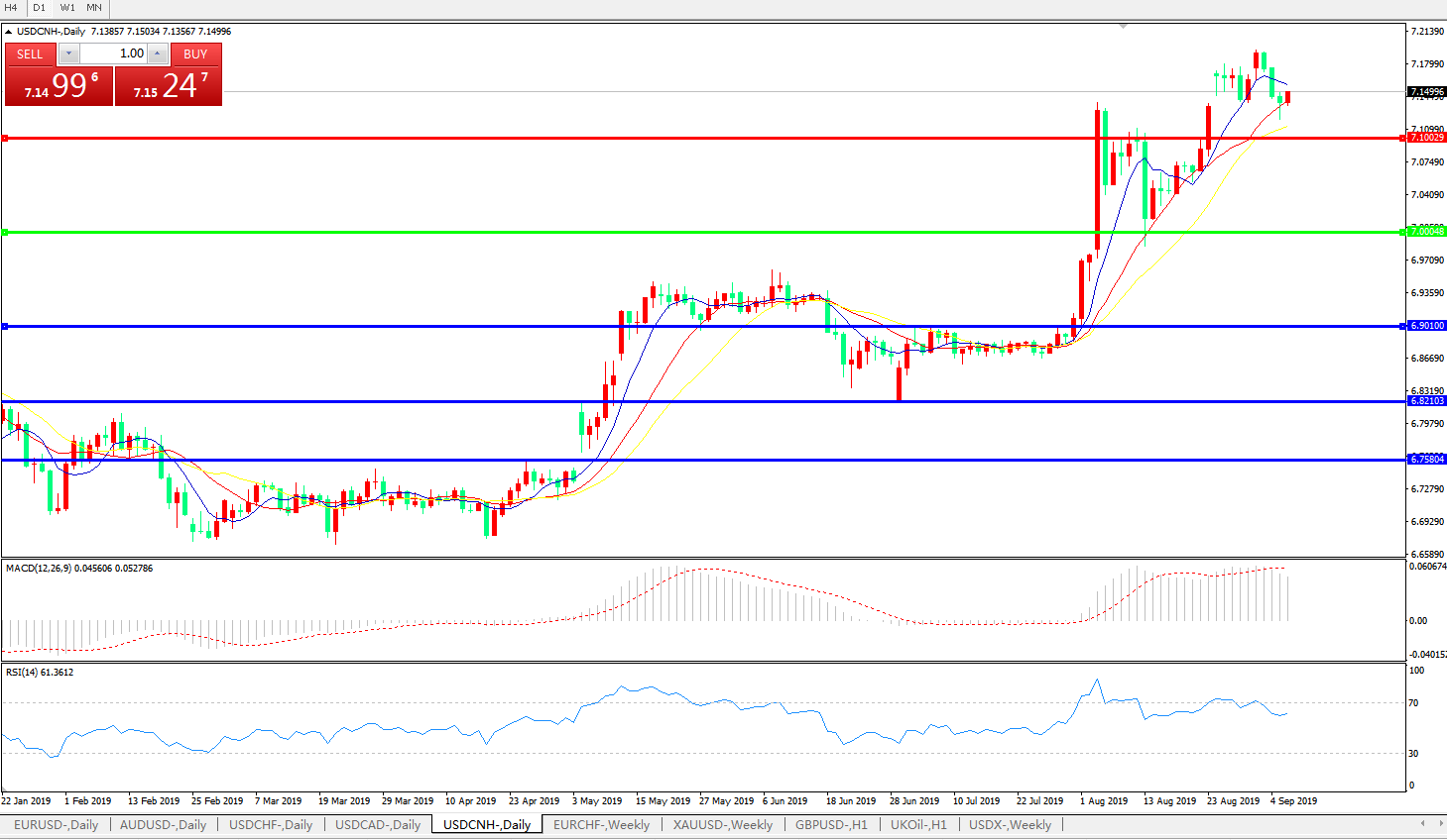 技术面简析:日图均线呈有序多头排列但短期均线开始转弱,汇价小幅回落后早盘有所走升,MACD运行在0轴上方但动能有缩量迹象,RSI自超买区域持续下行,预计短期汇价将继续回落下行,上方重点关注7.20-7.30区间的压制;中美贸易战后续进展决定汇价中期走势。