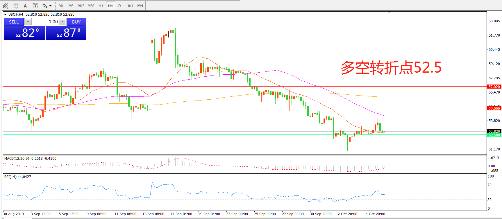 多空转折点:52.50