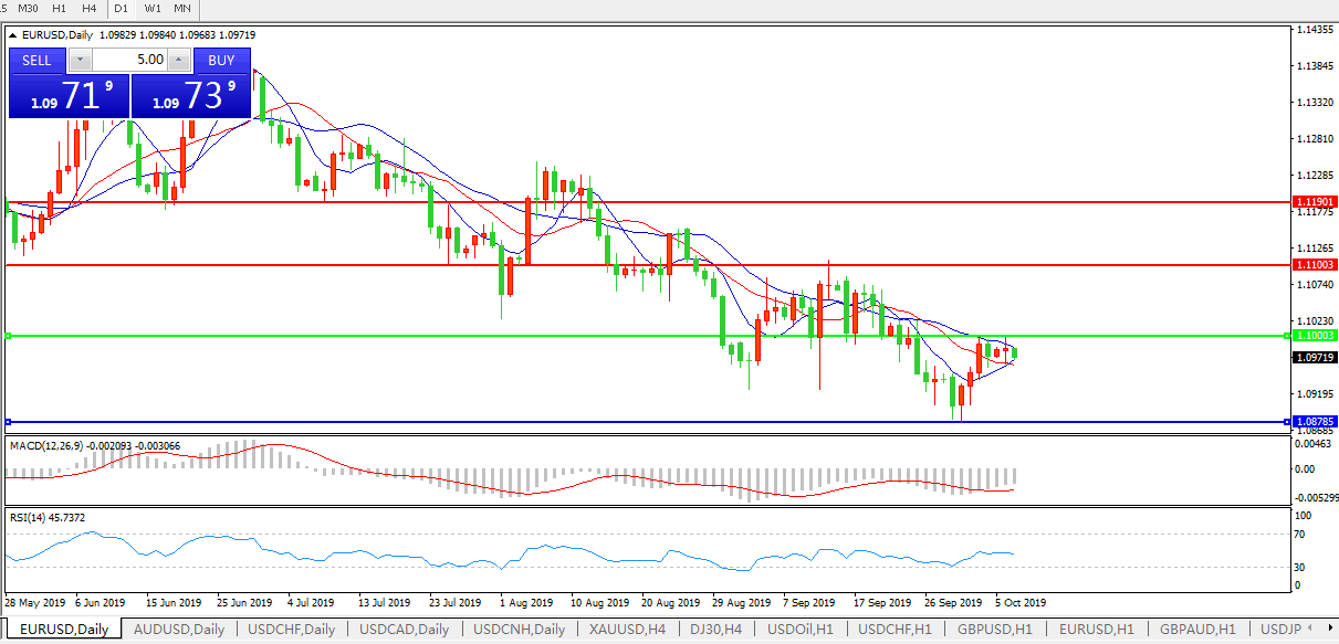 交易策略:1.1000下方看跌,目标1.0870、1.0700