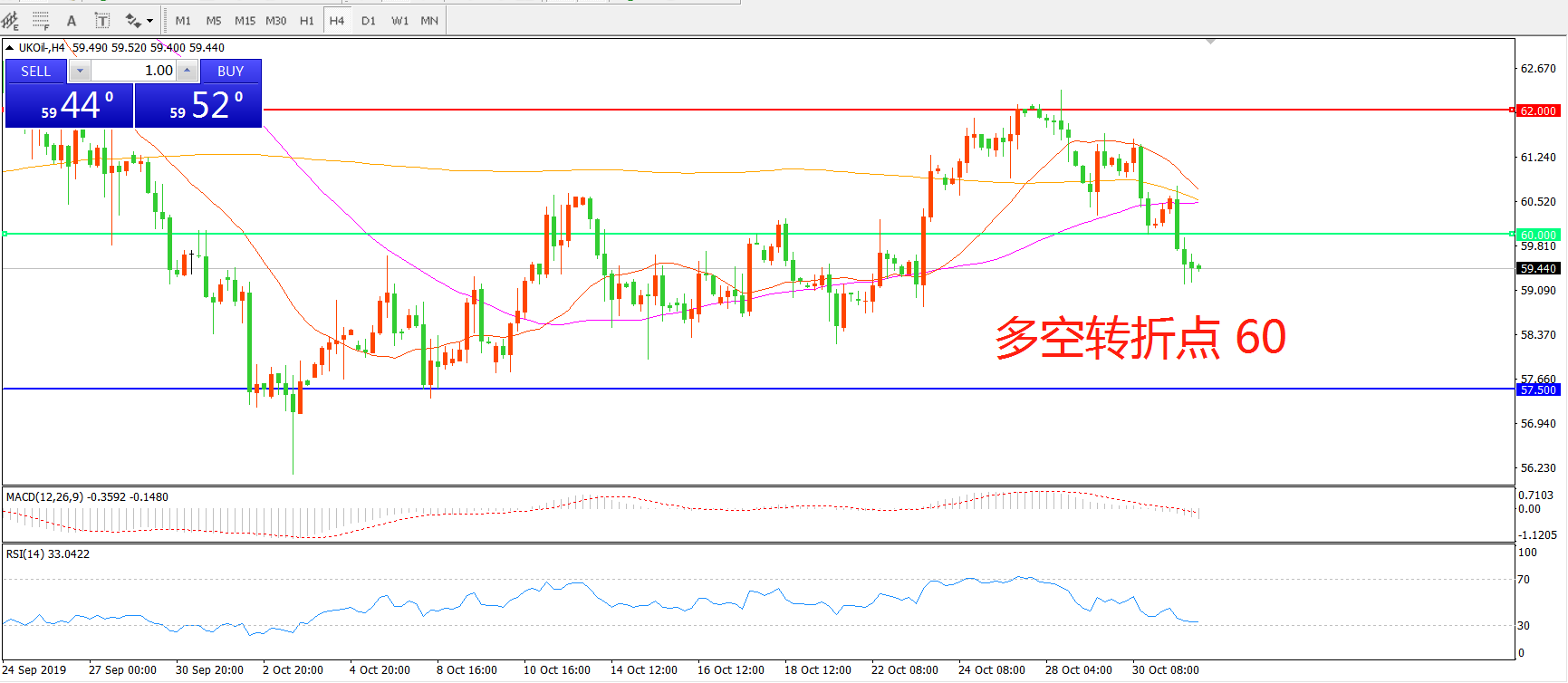 交易策略:在60.00之下看跌,目标57.50    55.50