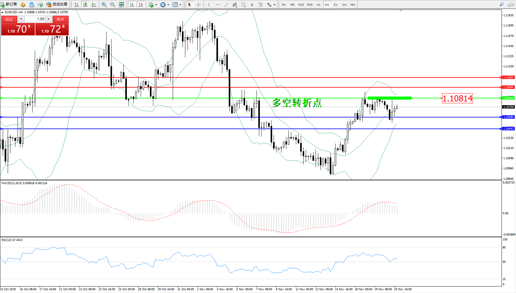 备选策略:1.10814上方看涨,目标1.10944、1.11063