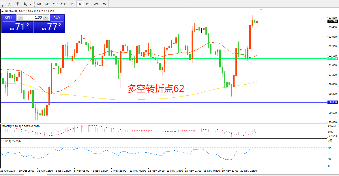 交易策略:在62.00之上看涨,目标64.50 66.00
