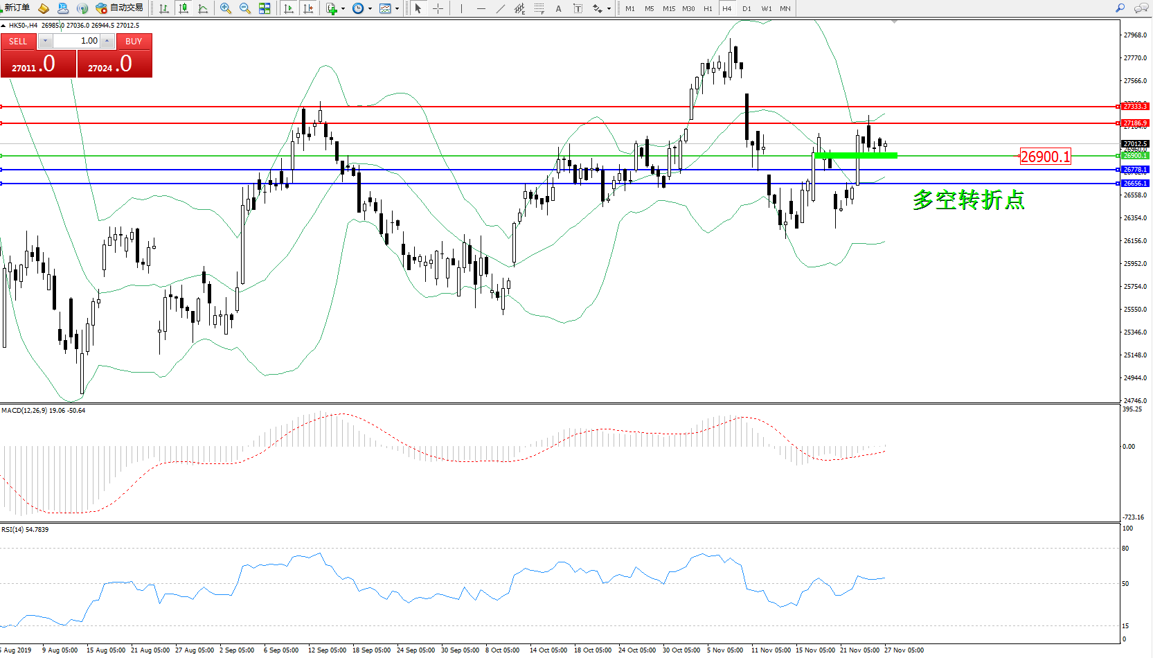 香港恒生指数1127日(周三)收盘上涨40.08点,涨幅0.15%,报26954.00点;港股小幅高开29点后,再回落倒跌低见26866。随后再逐步造好而回升,最高见2697426日中美国贸易代表同意就第一阶段协议磋商的剩余事项保持沟通。市场重点关注双方是否会在1215日美国对中国商品征加新一轮关税日期前达成折中方案。国际贸易谈判进展的消息与鲍威尔对美国经济状况的积极评价提振了市场信心。