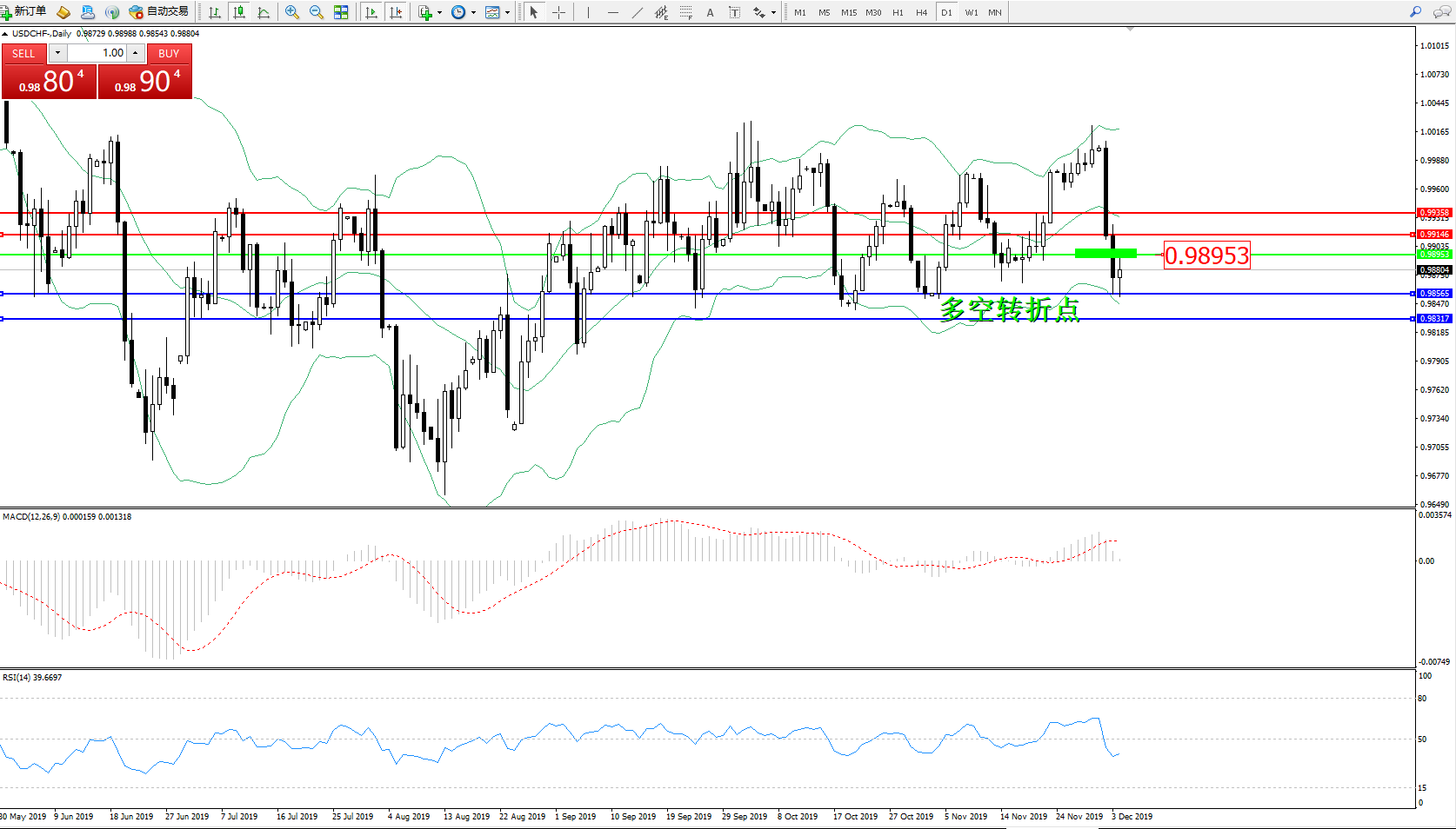 交易策略:0.98953下方看跌,目标0.98565、0.98317