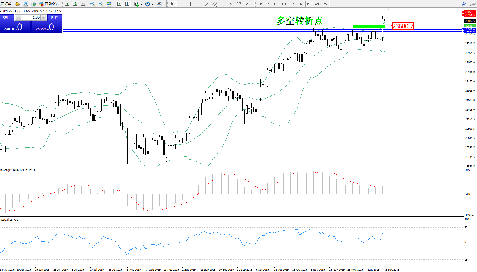 日经225指数1212日(周四)收盘上涨47.00点,涨幅0.20%,报23425.00点。日本央行副行长雨宫正佳:将继续实施适宜的政策,如果风险上升,会毫不犹豫的加码宽松措施,权衡宽松措施的利弊非常重要,需要关注来自海外的下行风险,全球经济如果进一步放缓,将影响日本,在执行政策时考虑到宽松是恰当的,日本央行认为发布偏向进一步宽松的政策前瞻指引是合适的,预计明年中期全球经济增速将适度提高,日本央行必须权衡每一步政策措施的利益以及代价。