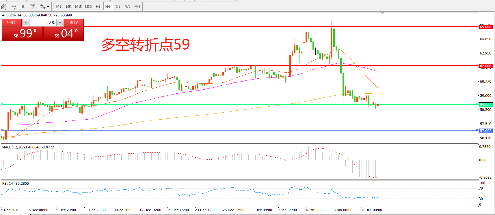 交易策略: 在59.00之下看跌,目标57.00      54.00