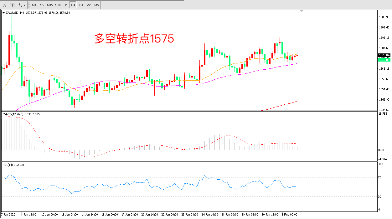 周一(2月3日)黄金市场先涨后跌,日内一度刷新近四周新高,但随着投资者选择获利了结,金价大幅回落,收至1578.32美元/盎司。但英国谈判一波三折,中国在春节假期结束后推迟复工,全球经济放缓顽疾难解诸多不确定性依然支撑这市场上的避险情绪中期走势依然看多
