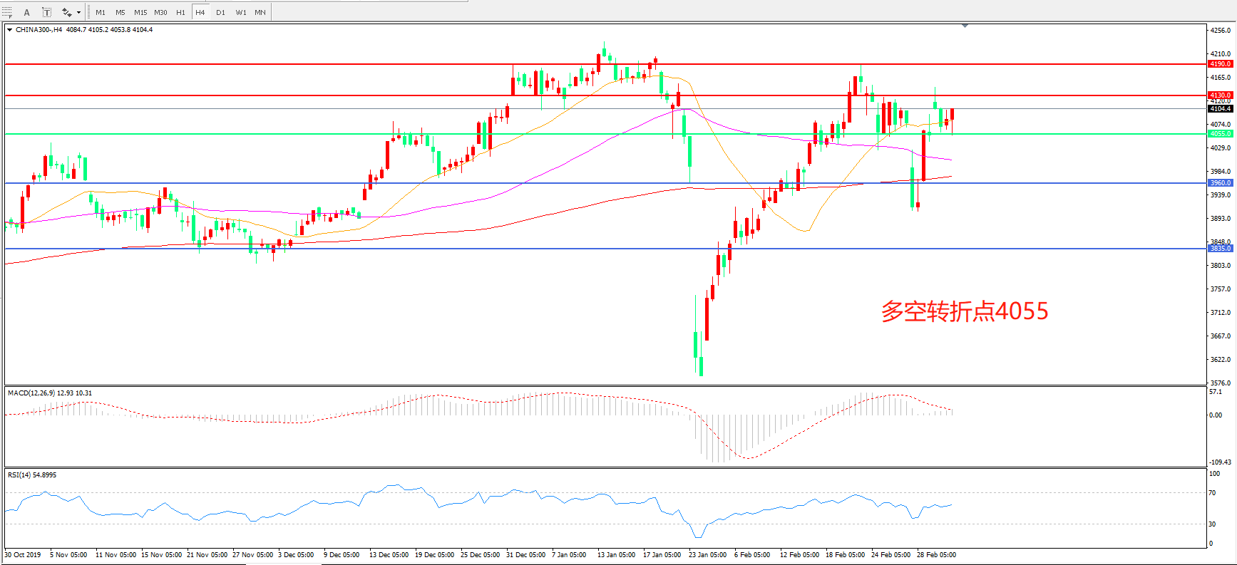 4小时图看,沪深300延续高位震荡,表现强势,均线系统走平,MACD红柱增加,RSI指标走平,日内延续上行概率较大。