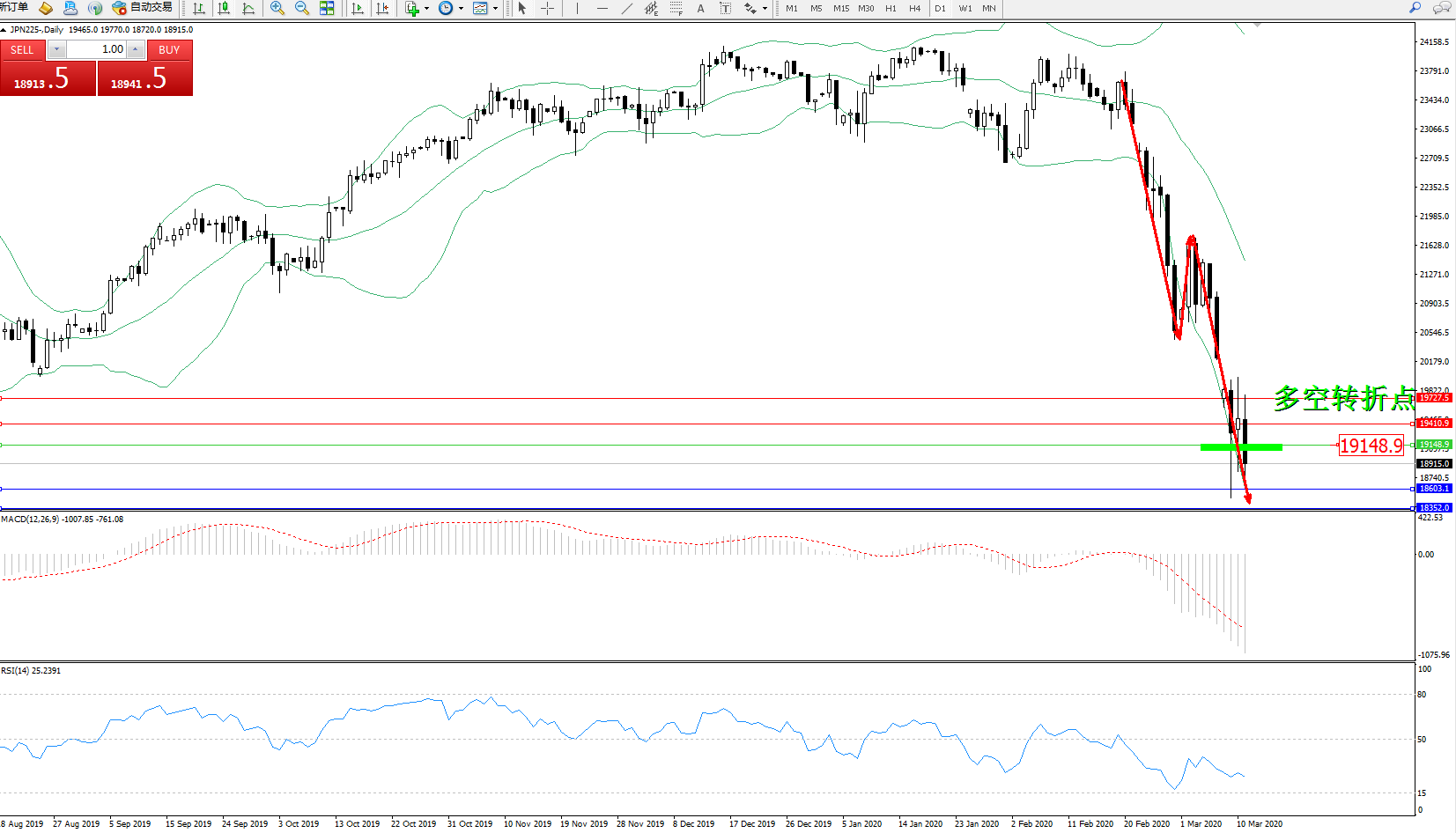 日经225指数311日(周三)收盘下跌446.62点,跌幅2.25%,报19420.50点。投资者等待着特朗普政府就计划针对公共卫生事件影响采取的刺激措施公布更多细节,这可能遭遇共和党的阻力,同时,疫情在全球范围内的扩散形势依旧严峻,日内风险偏好情绪有所回落,美债收益率大幅下跌,疫情在全球范围内的扩散形势依旧严峻,亚洲股市纷纷走低,日本政府10日召开卫生风险对策总部会议,敲定了防控卫生风险和支援维持就业等的第二轮紧急应对措施。第二轮的财政措施规模为4308亿日元(约合人民币285亿元),较第一轮的153亿日元大幅扩充。首相安倍晋三在会上表示:“必须尽全力优先确保劳动力雇用的维持和企业的继续经营。”