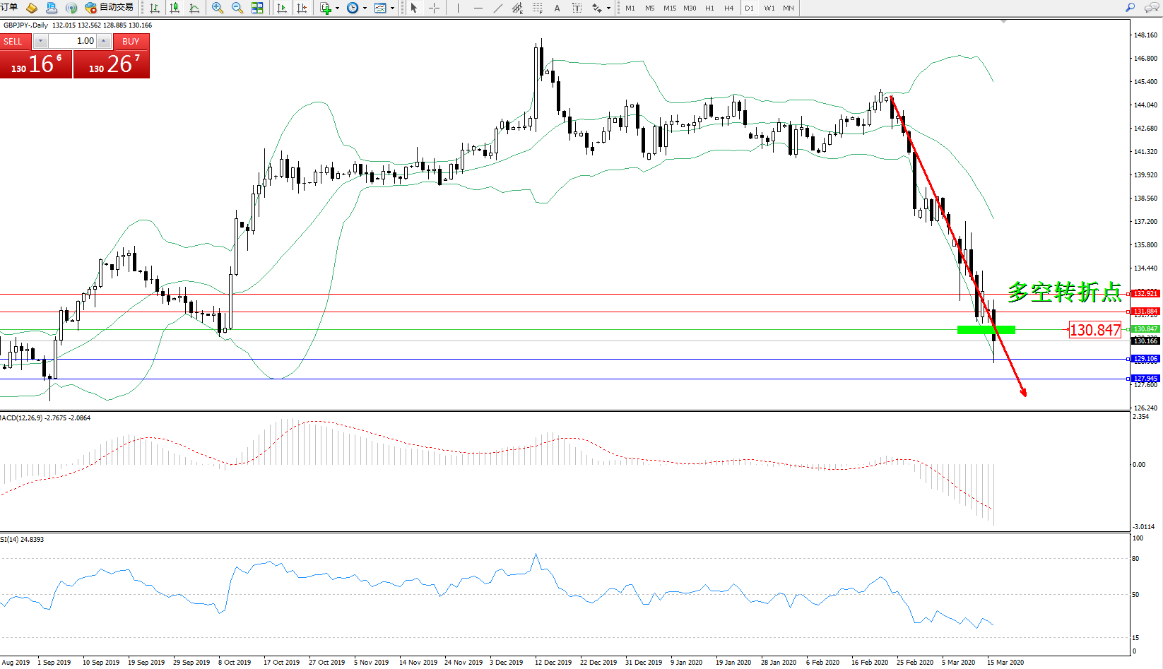 英镑兑日元现报130.32,涨0.39%;经历了华尔街恐怖的一周之后,终于等来好消息,这可能标志着危机终结的开始。美国和欧盟出台财政刺激计划,且美国和欧洲多国宣布进入国家紧急状态,同时多家央行实施了紧急降息。美联储紧急降息100个基点,加拿大央行9天内第二次紧急降息50点,新西兰联储紧急降息75点,英国央行预计也将进一步放宽货币政策。在全球股市暴跌和英国经济出现放缓迹象的背景下,。英国央行宣布将银行业者的逆周期资本缓冲(CCB)1%调降至0%,并出台一项新方案,以支持对小型企业的放款,这两个动作都是为了维持借贷畅通。